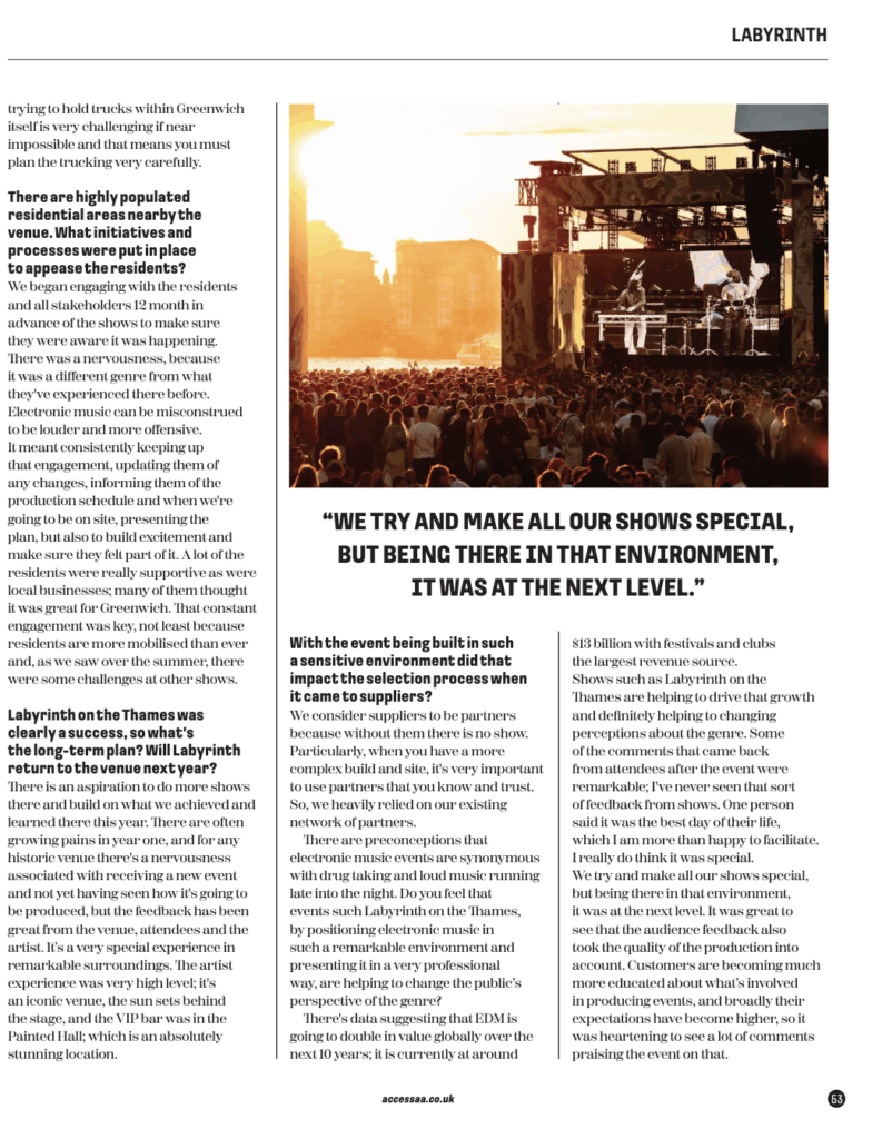 Huge thanks to the Access All Areas team for featuring this incredible project, and for spotlighting the planning, production and collaboration that went into making Labyrinth on the Thames a standout success.